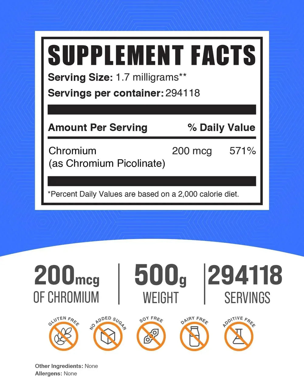 Bulk Supplements Chromium Picolinate 200mcg Powder 500Gr.