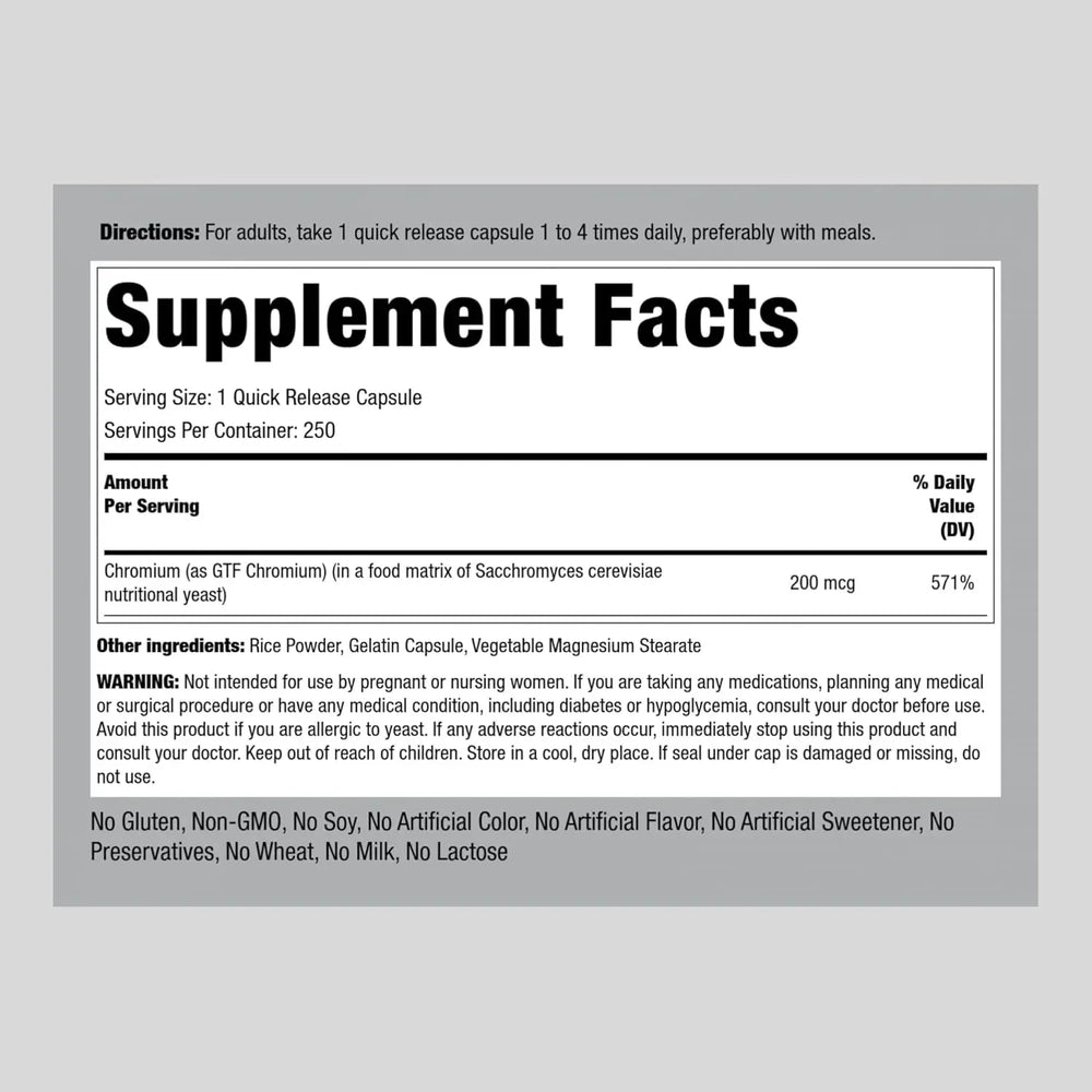 Piping Rock GTF Chromium 200mcg 250 Capsulas