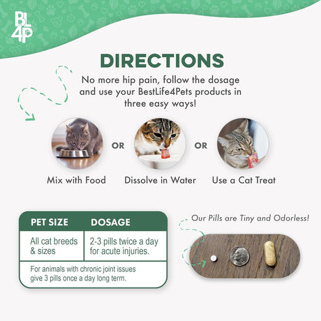BestLife4Pets Cat Hip and Joint Pain Relief Supplement 400 Tabletas