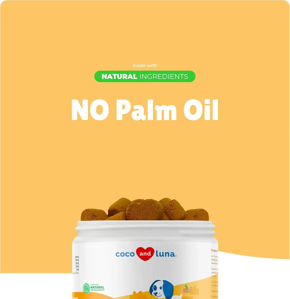 Cúrcuma para perros: el suplemento de cúrcuma Coco and Luna contiene curcumina, un antioxidante que favorece la salud articular, hepática, gastrointestinal y cardiovascular.