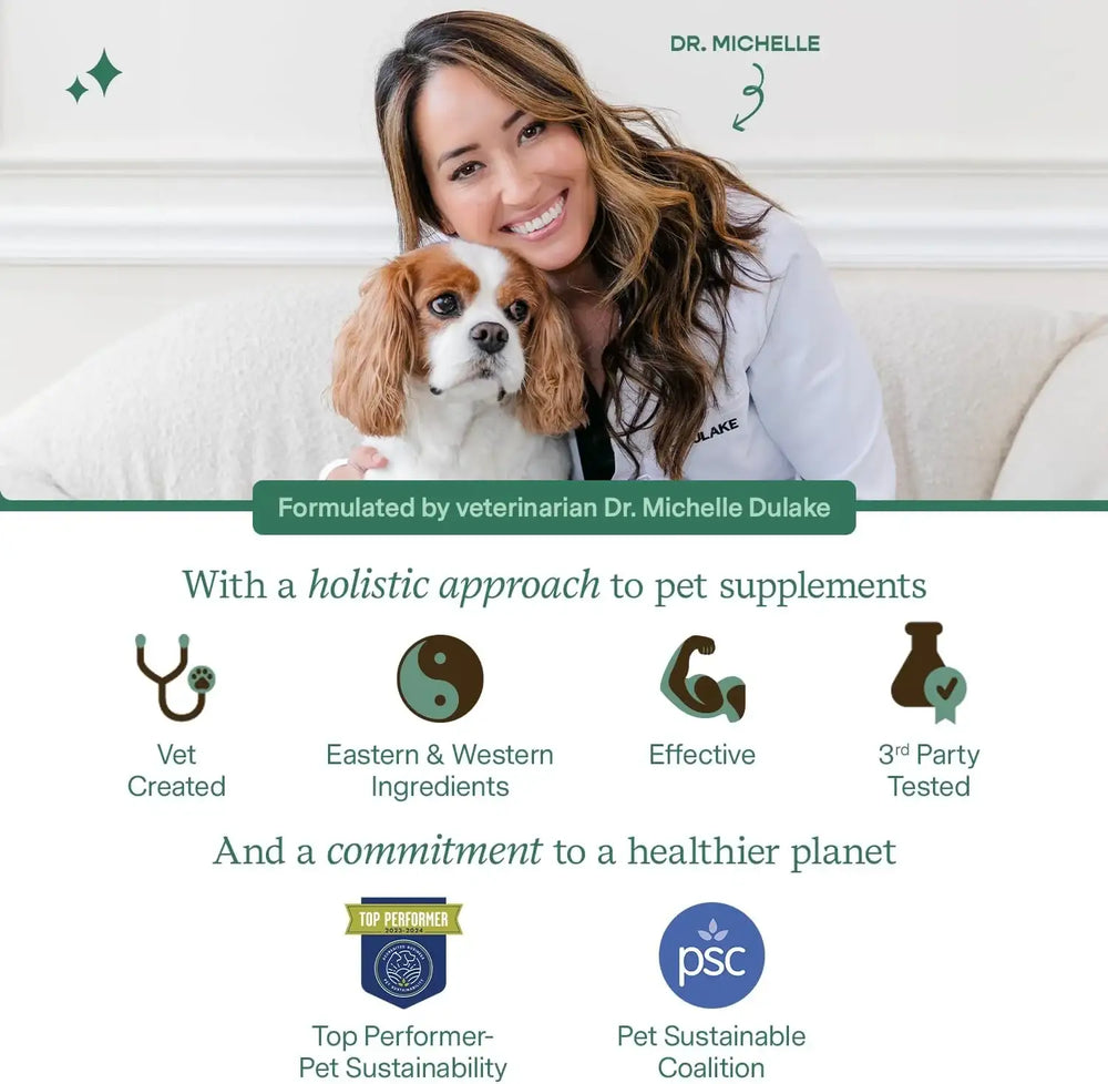 Formulado por veterinarios: El suplemento para caderas y articulaciones para perros y gatos, elaborado por nuestro cofundador, el veterinario Dr. Dulake, cuenta con el sello de calidad NASC, se fabrica en EE. UU., cumple con las normas de buenas prácticas de fabricación (GMP) y no contiene colorantes, tintes ni conservantes.
