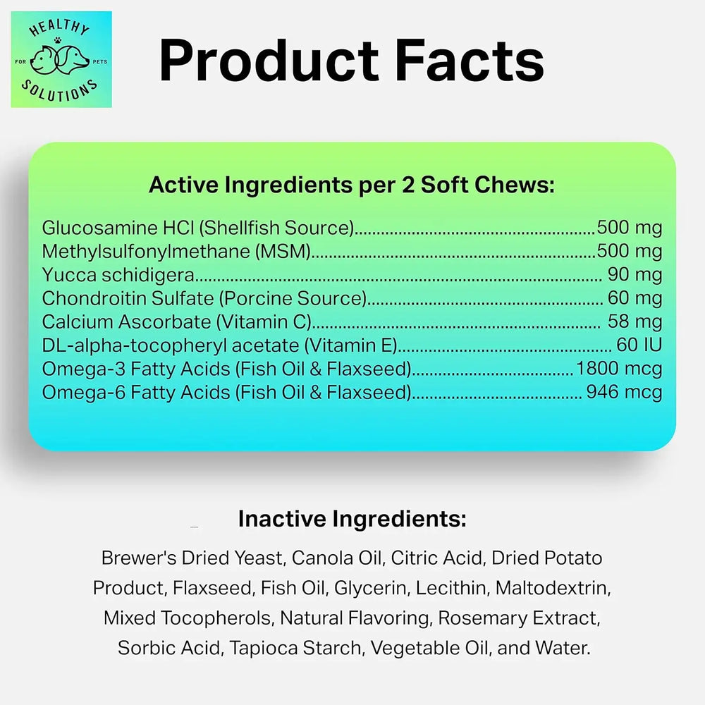 • FORMULADO POR VETERINARIOS con ingredientes de alta calidad que favorecen la movilidad, la salud de los cartílagos y las articulaciones, incluyendo glucosamina, condroitina y MSM. -- 60 Masticables Suaves