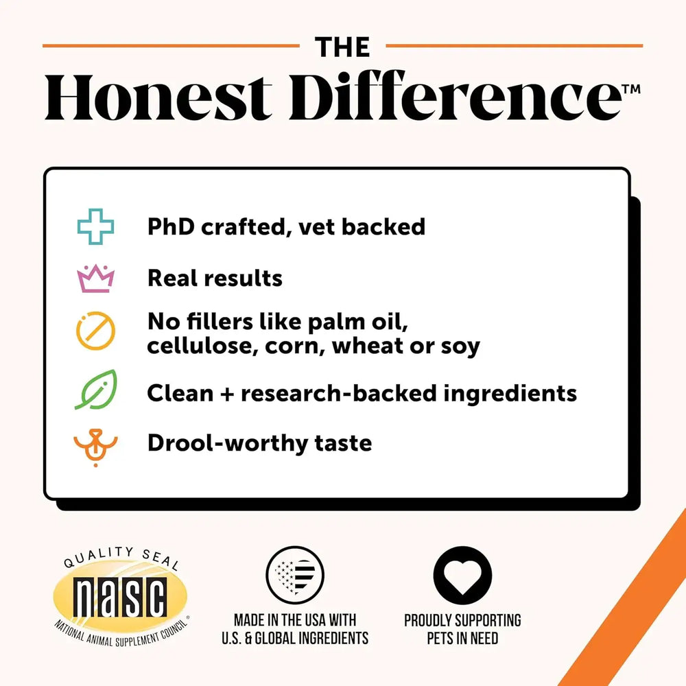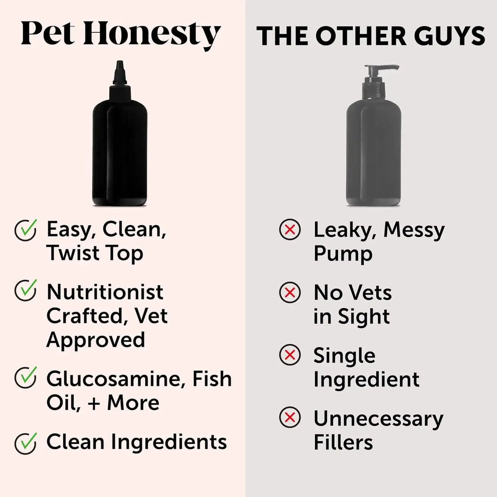 Honestidad en cada plato: ¿Listo para la diversión del frisbee? El caldo de huesos para cadera y articulaciones con glucosamina de Pet Honesty hace que la hora de comer sea más emocionante con ingredientes totalmente naturales que ayudan con las articulaciones doloridas y rígidas. Se acabaron los masticables que se desmoronan en su comida: este delicioso complemento con una práctica tapa giratoria garantiza una dosificación precisa y una experiencia más limpia (¡adiós a los dispensadores desordenados!).