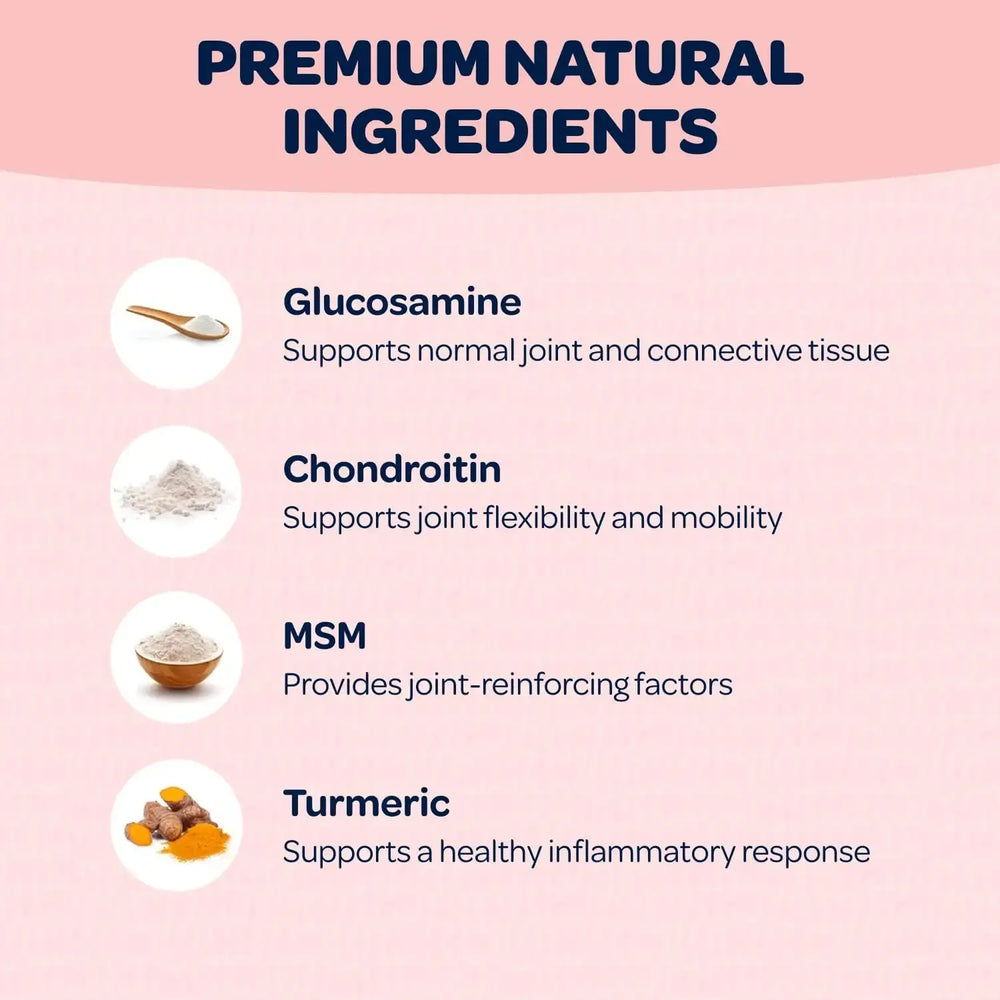 Para todos los perros: prueba nuestra fórmula nutritiva de suplemento para cadera y articulaciones para perros de razas grandes y pequeñas, ideal para promover la comodidad de las articulaciones y la cadera en cachorros mayores y jóvenes por igual, con ingredientes excepcionales.