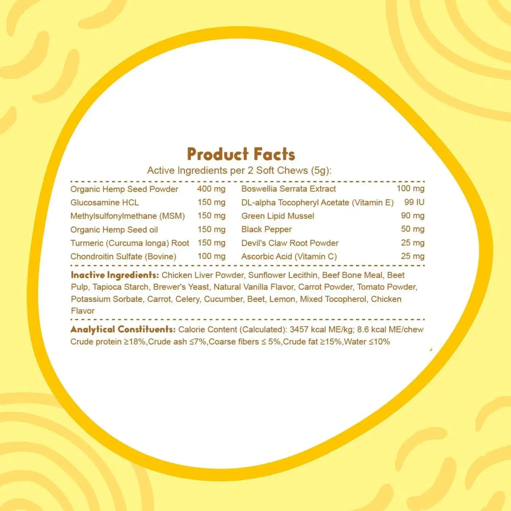 Apoyo articular: alivia el dolor de su perro y aumenta su movilidad y flexibilidad. Aumenta la energía y ayuda a fortalecer los huesos. Ayuda con el cartílago y la inflamación.