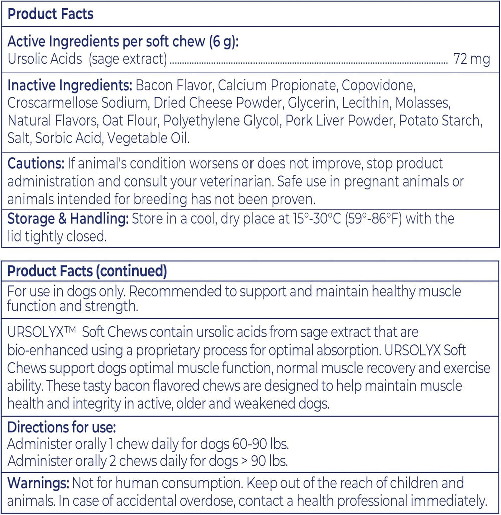 • Apoyo comprobado para la salud muscular: Formulado con ácido ursólico, URSOLYX Soft Chews promueve la fuerza y la función muscular en tan solo 8 semanas en perros mayores, activos o en recuperación.