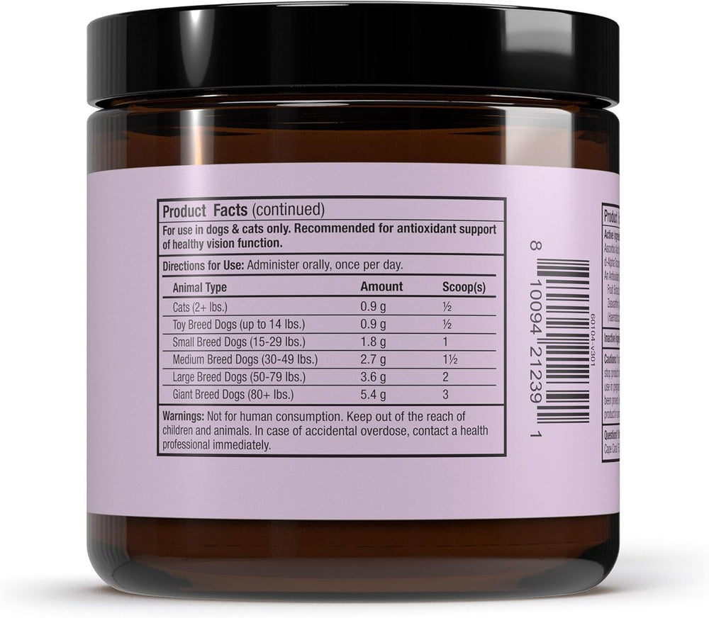 Apoyo ocular para gatos y perros: Bark & Whiskers Eye Support promueve la función ocular y la visión saludables en mascotas con una mezcla específica de poderosos antioxidantes naturales para satisfacer sus necesidades diarias de bienestar.