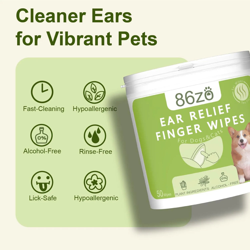 86zo Dog Ear Finger Wipes for Dogs & Cats 50 Toallitas