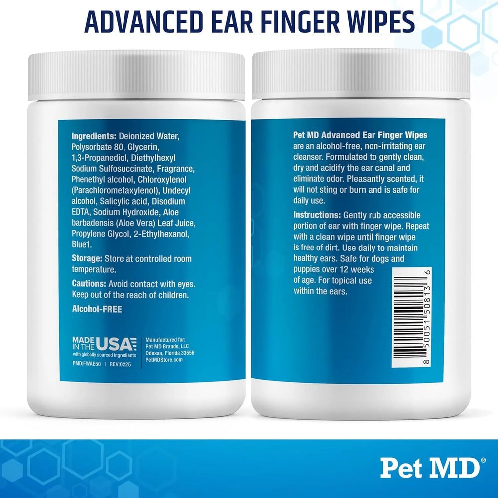 Pet MD Advanced Ear Finger Wipes for Dogs & Cats 50 Toallitas