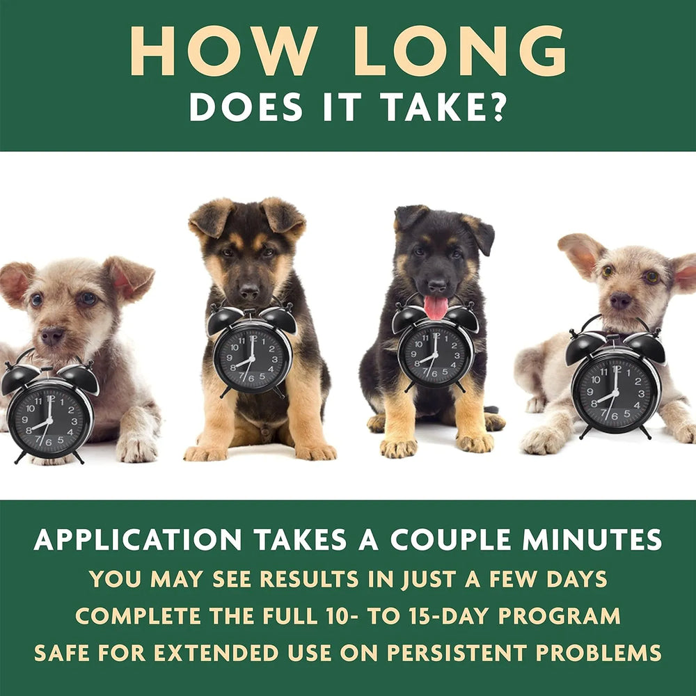 LIMPIADOR DE OÍDOS MULTIACCIÓN N.° 1 PARA PERROS: Úselo para la picazón, el mal olor y la suciedad. Ayuda a restaurar la salud de los oídos de su perro en 7 a 10 días. EcoEars ayuda a eliminar los problemas comunes de oído causados por la acumulación de cerumen, suciedad y mugre, dejándolos frescos y limpios. Simplemente llene el canal auditivo y masajee suavemente la base de la oreja de su perro.
