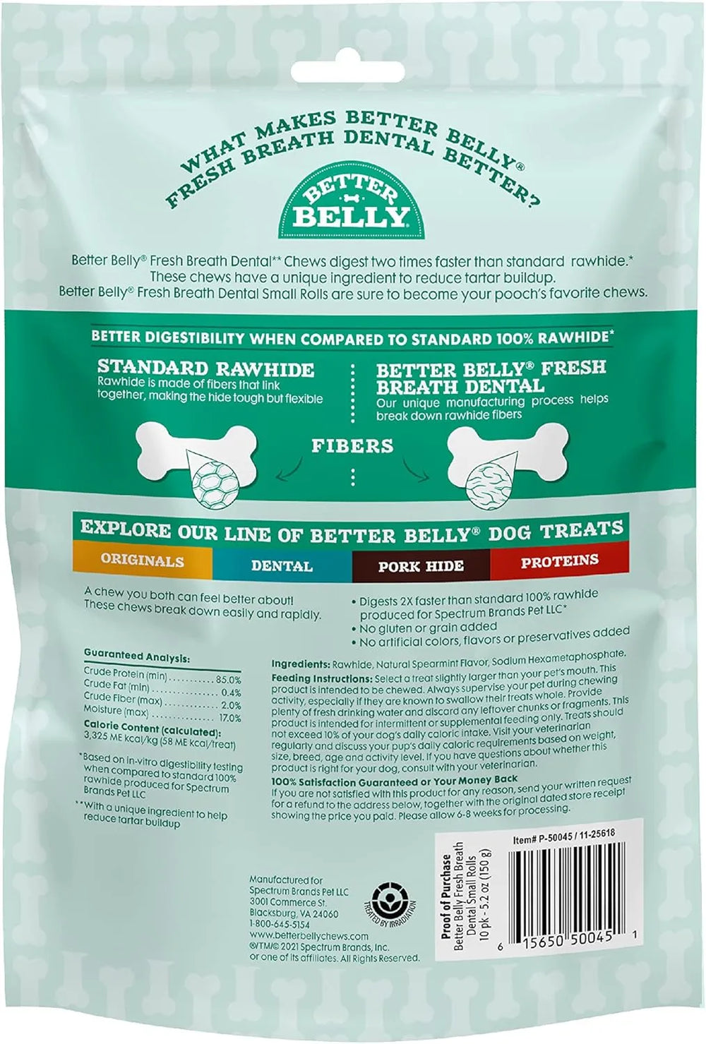 TAMAÑO PEQUEÑO: Los rollitos dentales pequeños Better Belly Fresh Breath son ideales para perros pequeños.