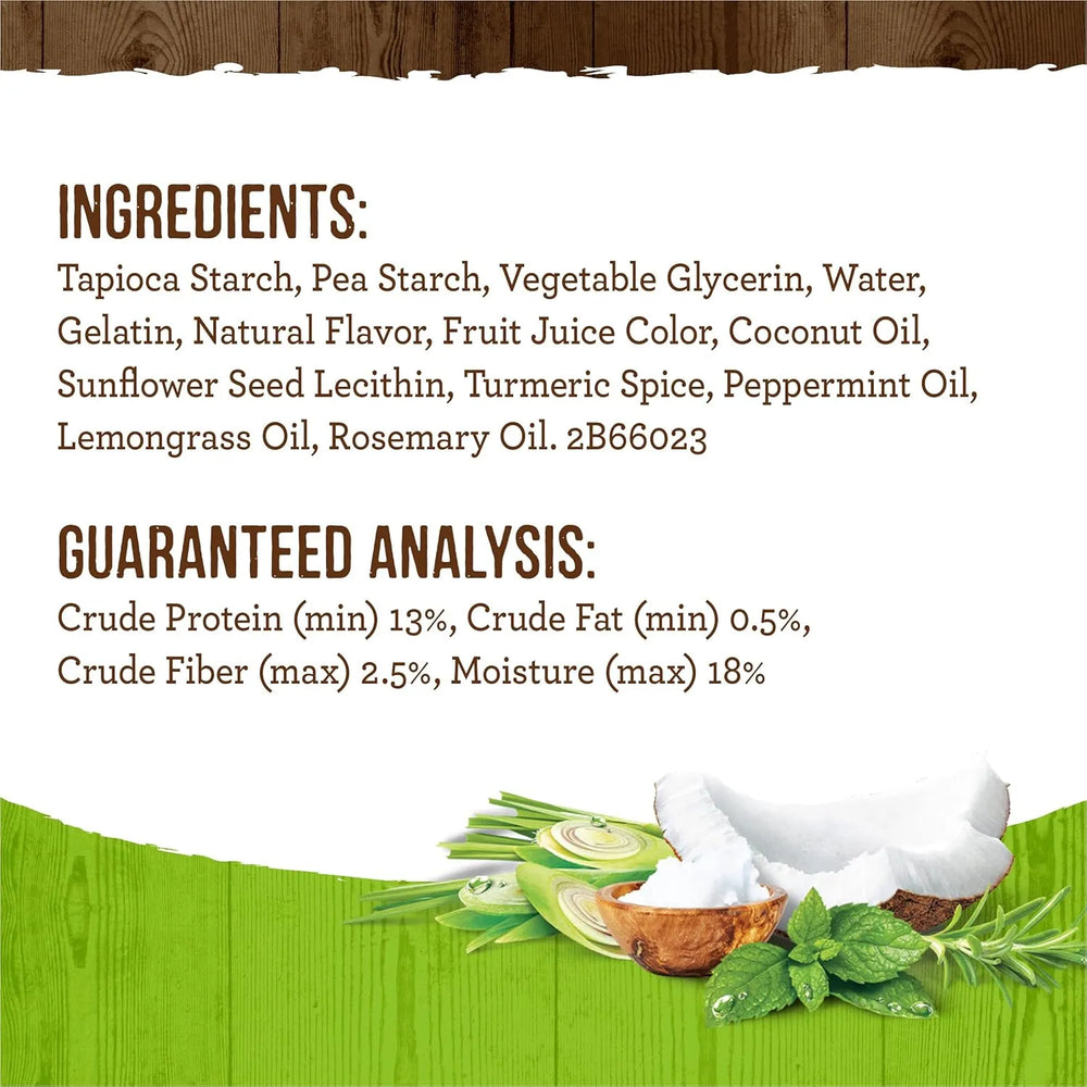 Los masticables dentales para perros con coco y aceites botánicos son fáciles de digerir, limpian los dientes y refrescan el aliento con solo 13 ingredientes.