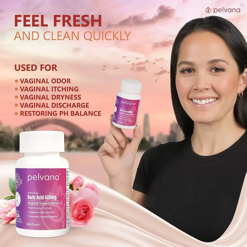 APOYA LA SALUD VAGINAL GENERAL: incorpore los supositorios de ácido bórico Pelvana en su rutina de bienestar femenino para disfrutar de un estilo de vida más renovado y seguro. Los óvulos se pueden tomar 24 horas después del sexo y el último día de su período. No lo use cerca de heridas abiertas. No lo use con la piel ya irritada o rota. Consulte a su médico antes de usar si está embarazada, amamantando o tiene una condición médica.