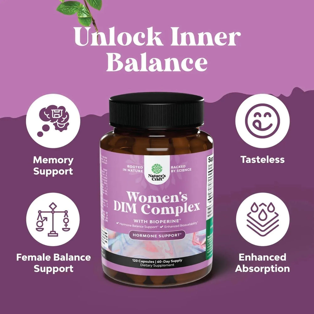 Complejo de equilibrio para mujeres: pruebe nuestro DIM avanzado más brócoli con calcio y BioPerine para un equilibrio hormonal de acción rápida para mujeres que buscan verse y sentirse más jóvenes con un estado de ánimo energético mejorado y más.