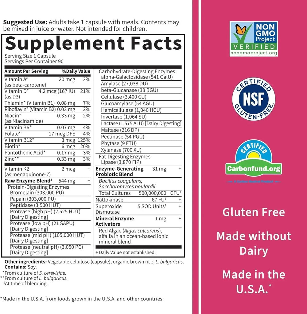 PODERAR UNA SALUD EXTRAORDINARIA: Nuestro suplemento de enzimas digestivas está hecho para potenciar una salud extraordinaria y está verificado por un proyecto de terceros sin OGM, certificado sin gluten, vegetariano y neutro en carbono; Fabricado en EE. UU. sin lácteos, soja, gluten ni frutos secos.