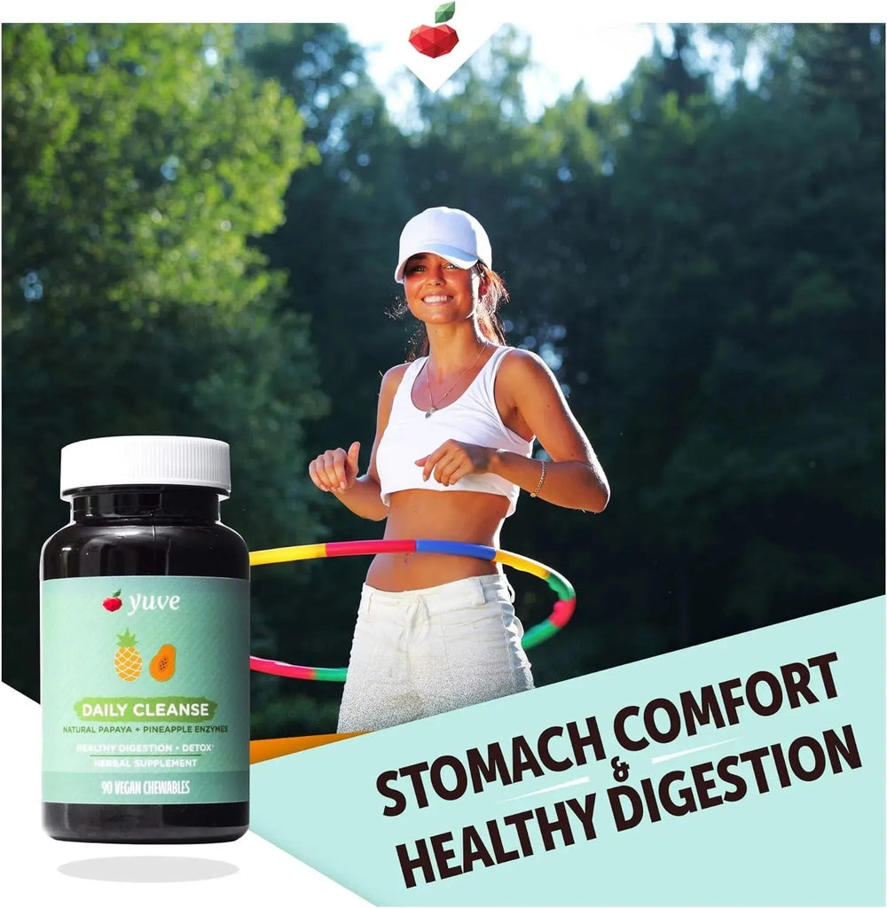 • Detenga la hinchazón, el malestar estomacal y los gases: Yuve Daily Cleanse puede ayudar a digerir grasas, fibra, celulosa, proteínas y gluten al favorecer la descomposición de alimentos difíciles de digerir y aliviar el dolor o malestar causado por el síndrome del intestino irritable, diarrea, gases, hinchazón. estreñimiento y otros problemas gastrointestinales.