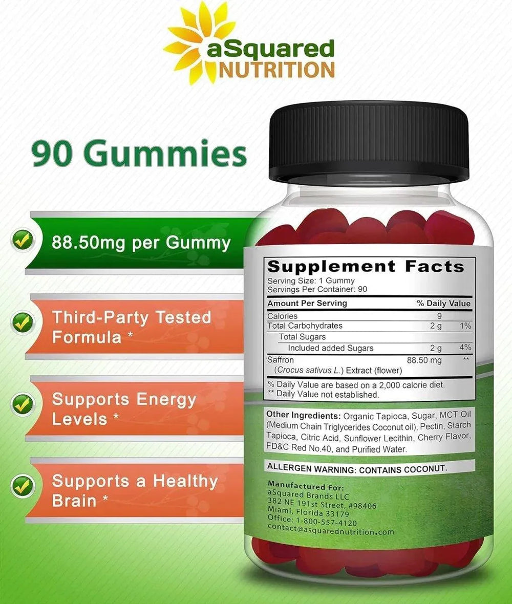 aSquared Nutrition Saffron Gummies 90 Gomitas