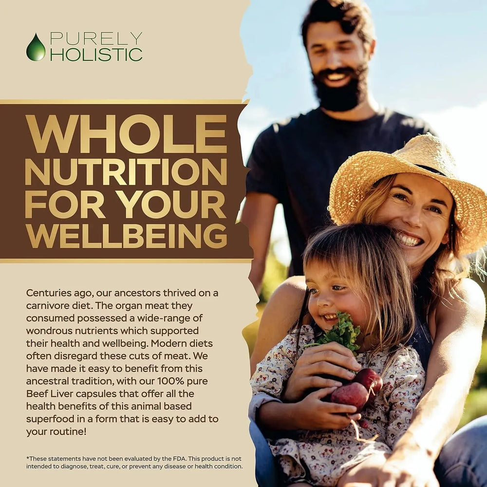 Purely Holistic Grass Fed Beef Liver 4500Mg. 270 Capsulas