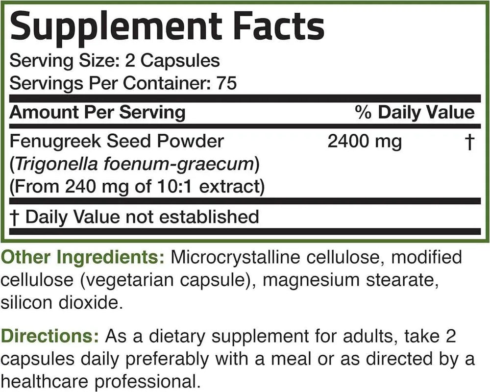 Bronson Fenugreek Seed Powder 2400Mg. 150 Capsulas