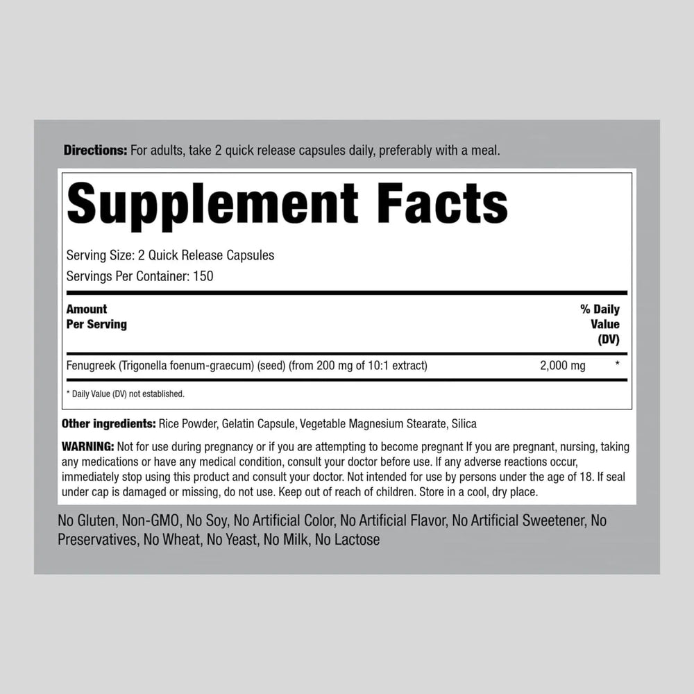 Piping Rock Fenugreek 2000Mg. 300 Capsulas