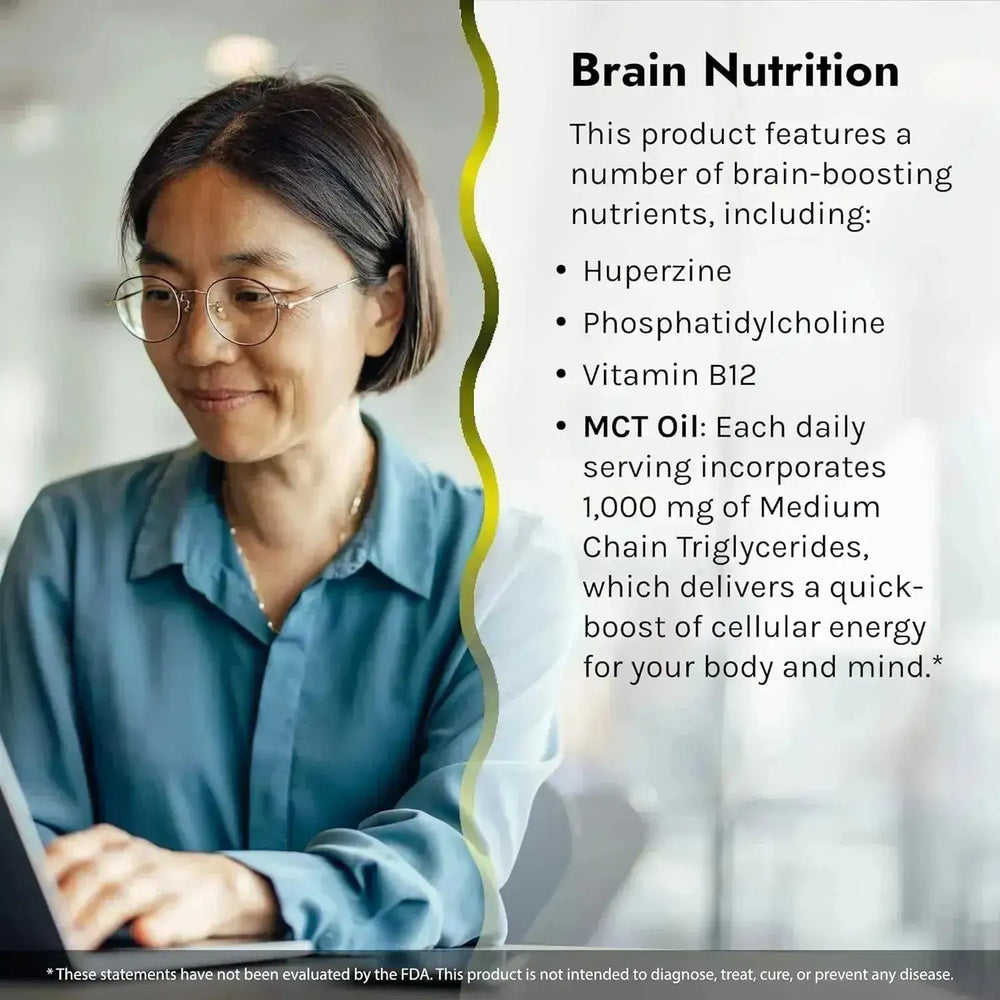 FÓRMULA RICA EN NUTRIENTES: este producto contiene el nutriente cerebral emergente huperzina, junto con fosfatidilcolina, además de vitamina B12 para un mayor apoyo nutricional. Junto con 2000 mg de aceite de linaza nutritivo, que es una gran fuente de ácidos grasos omega-3, fibra y proteínas.