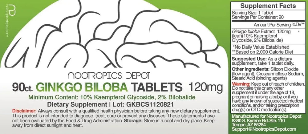 Nootropics Depot Ginkgo Biloba Extract 120Mg. 90 Tabletas