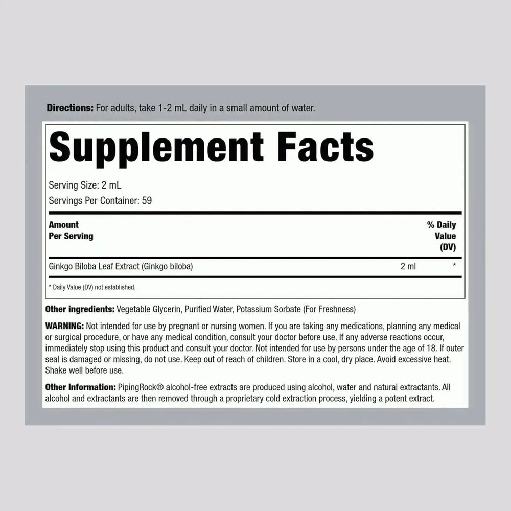 Piping Rock Ginkgo Biloba Liquid Herbal Extract 4 Fl.Oz.