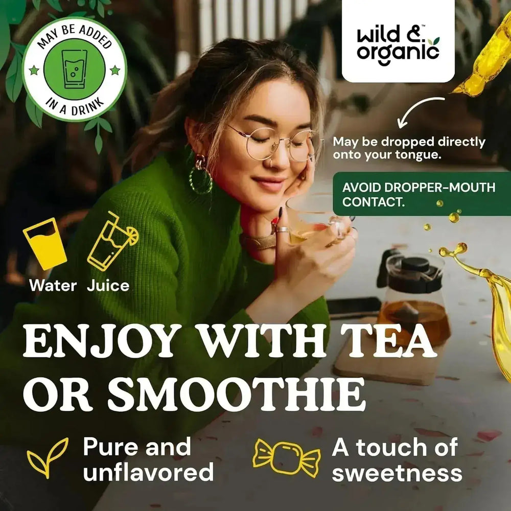 Apoyo para el cerebro: Cada porción de tintura de ginkgo biloba de Wild & Organic contiene 695 mg de extracto de ginkgo biloba para apoyar la concentración y la claridad.