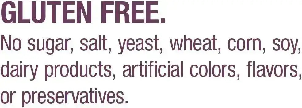 Sin gluten y vegano. Sin azúcar, sal, levadura, trigo, maíz, soja, productos lácteos, colorantes, saborizantes ni conservantes artificiales.