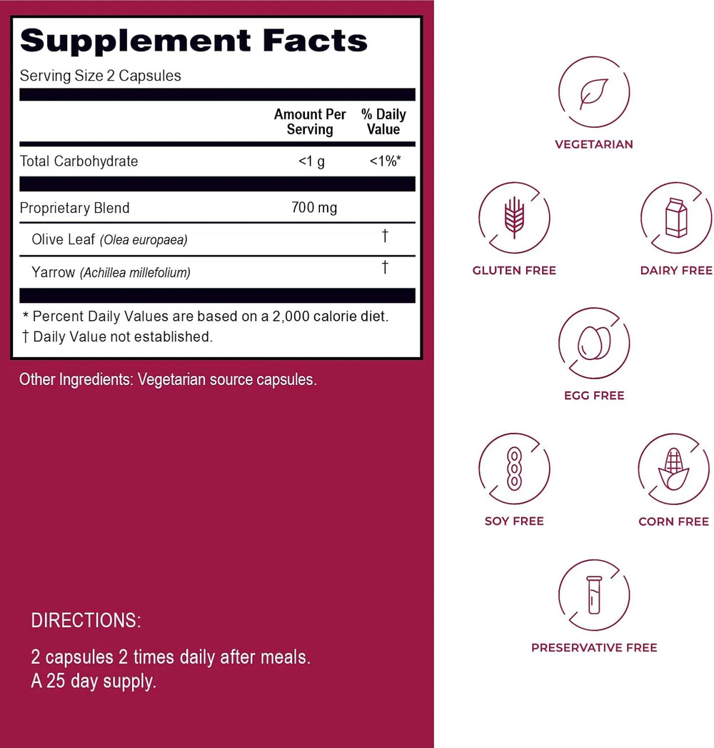 Apoyo a la salud inmunológica: la hoja de olivo y la milenrama contienen propiedades antioxidantes que ayudan a mantener un sistema inmunológico saludable, promoviendo la defensa contra las amenazas estacionales y estimulando la defensa inmunológica general.