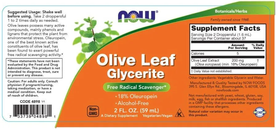 NOW Foods Supplements Olive Leaf Glycerite Liquid 2 Fl.Oz.
