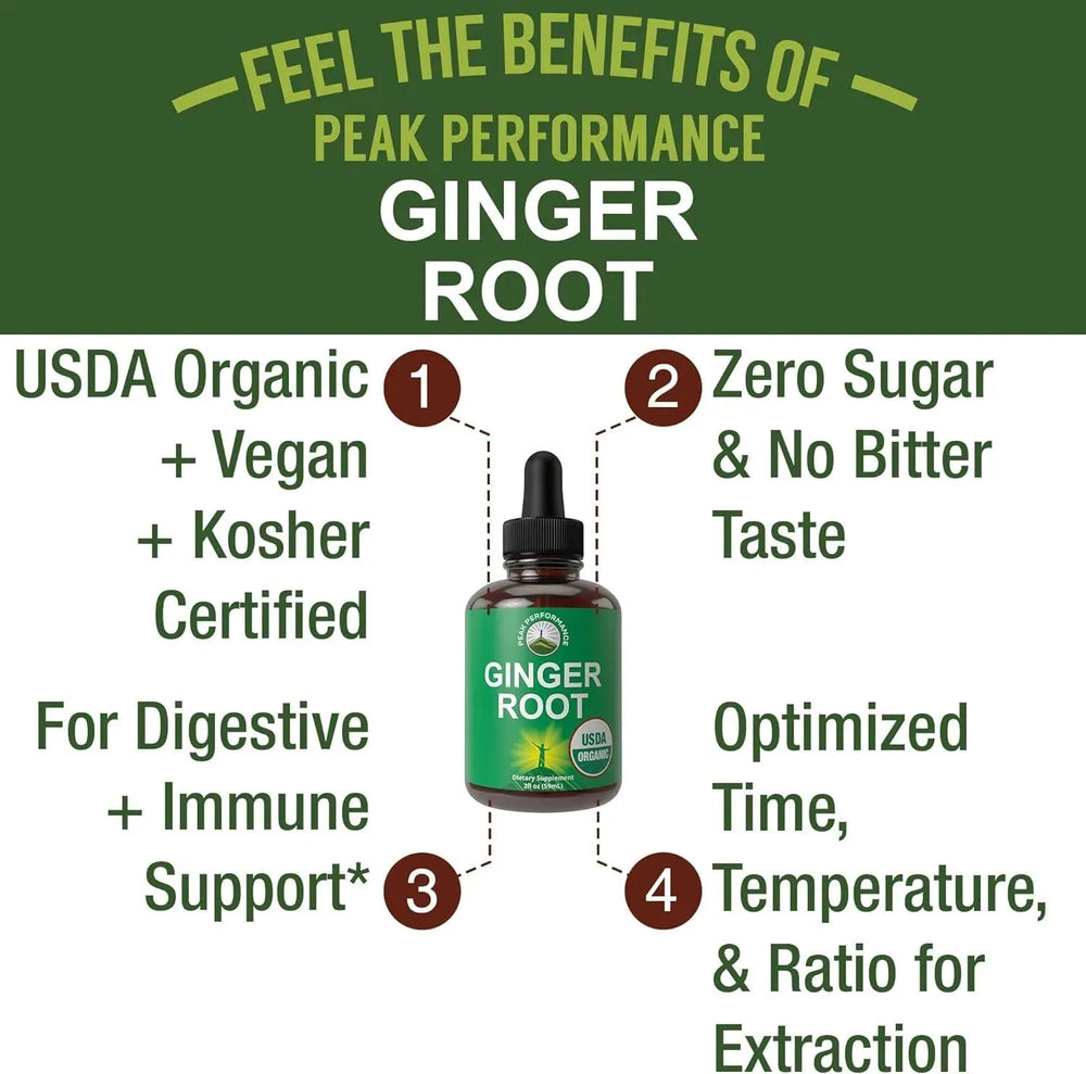 Peak Performance USDA Organic Ginger Root Extract Liquid Drops 59Ml.
