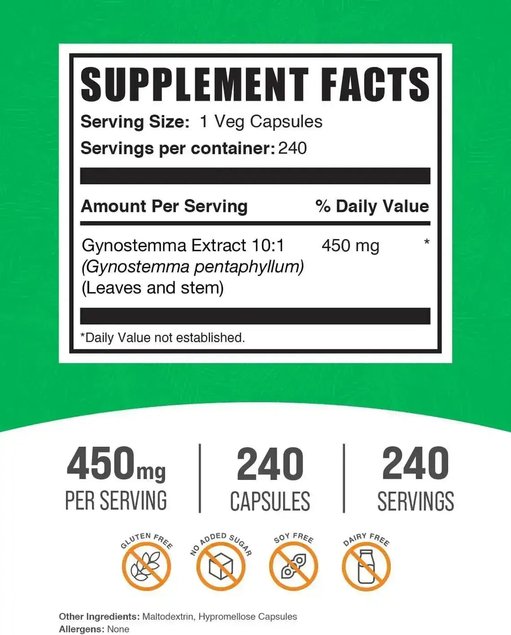 • ¡Aumente sus niveles de energía de forma natural!: ¡Manténgase al día con las demandas de la vida con nuestras cápsulas de Jiaogulan o extracto de Gynostemma pentaphyllum! Nuestro suplemento a base de hierbas es perfecto para esos días en los que necesita una explosión adicional de energía. Supere cualquier cosa, desde largas sesiones de estudio hasta actividades intensas con facilidad.