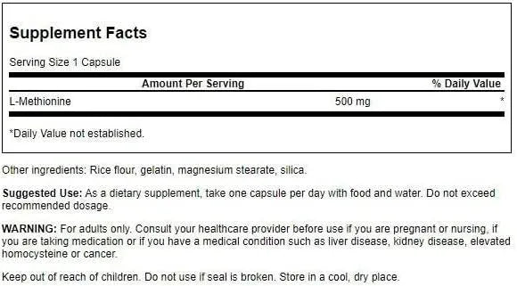 Swanson Pure L-Methionine 500Mg. 30 Capsulas