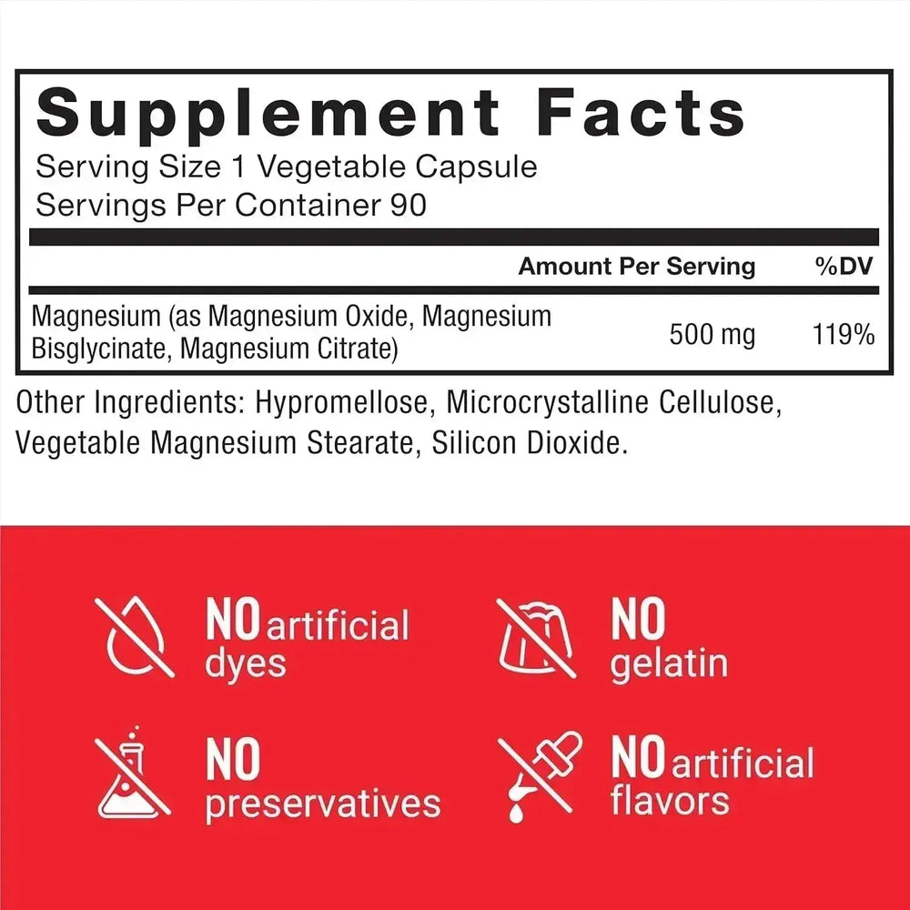 PROPORCIONA SOPORTE CORPORAL COMPLETO: Desde la función muscular y nerviosa hasta la densidad ósea y la salud cardiovascular, el magnesio respalda más de 300 funciones del cuerpo. Force Factor Magnesium proporciona una potente dosis de 500 mg en cada porción diaria.