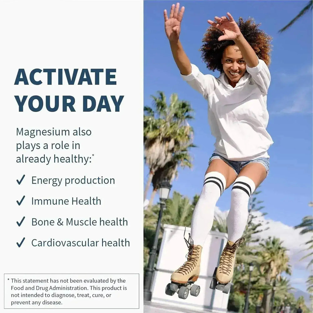• Fomenta huesos fuertes: es importante encontrar el complejo de magnesio adecuado para su cuerpo, ya que el mineral favorece más de 300 reacciones bioquímicas. Puede ayudar a su cuerpo a regular el calcio y mantener huesos fuertes, y convertir proteínas y grasas en energía.
