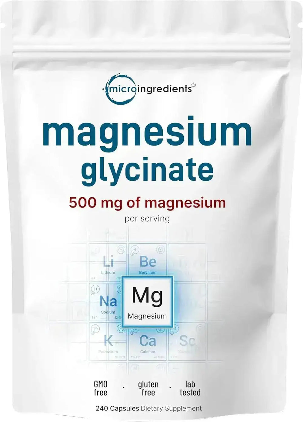 • Micro Ingredients ofrece cápsulas de glicinato de magnesio elemental de máxima potencia. Ofrece una de las formas de magnesio de mayor absorción, 100 % quelada y fabricada aquí mismo en los Estados Unidos.