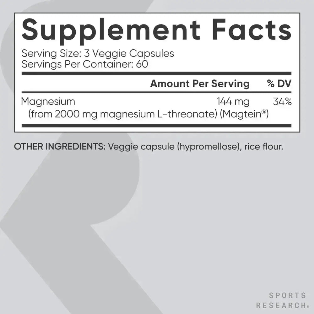 Sports Research Magtein Magnesium L-Threonate 180 Capsulas