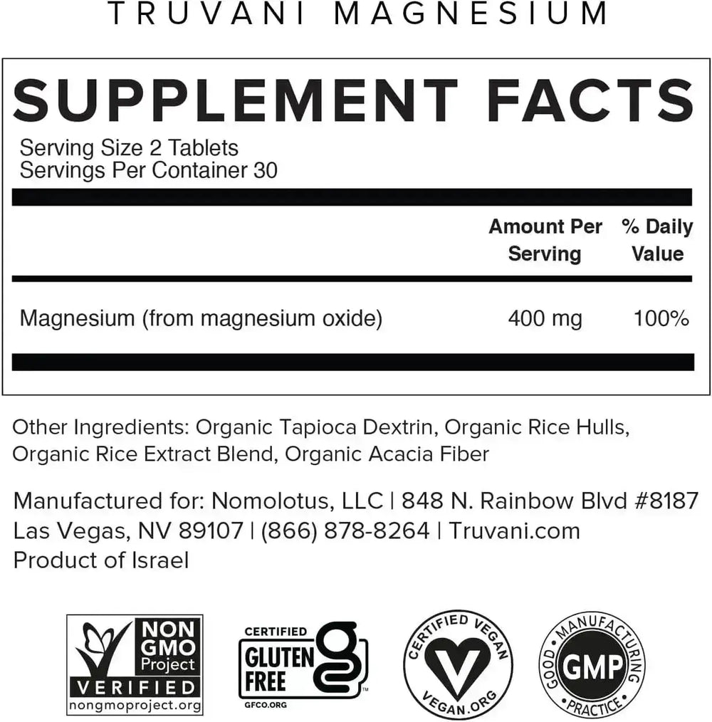 Truvani Magnesium 400Mg. 60 Tabletas