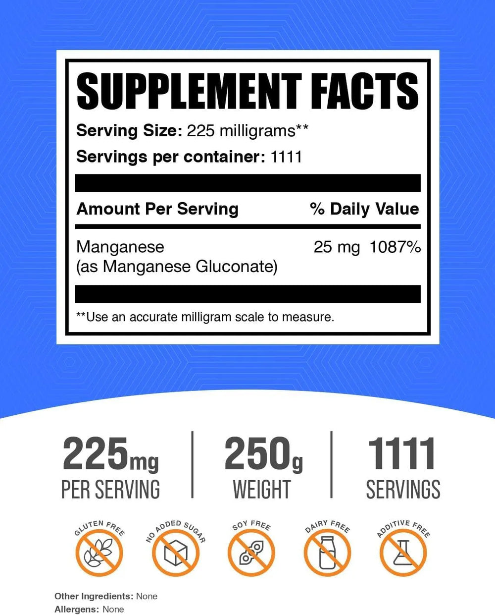 Bulk Supplements Manganese Gluconate Powder 250Gr.