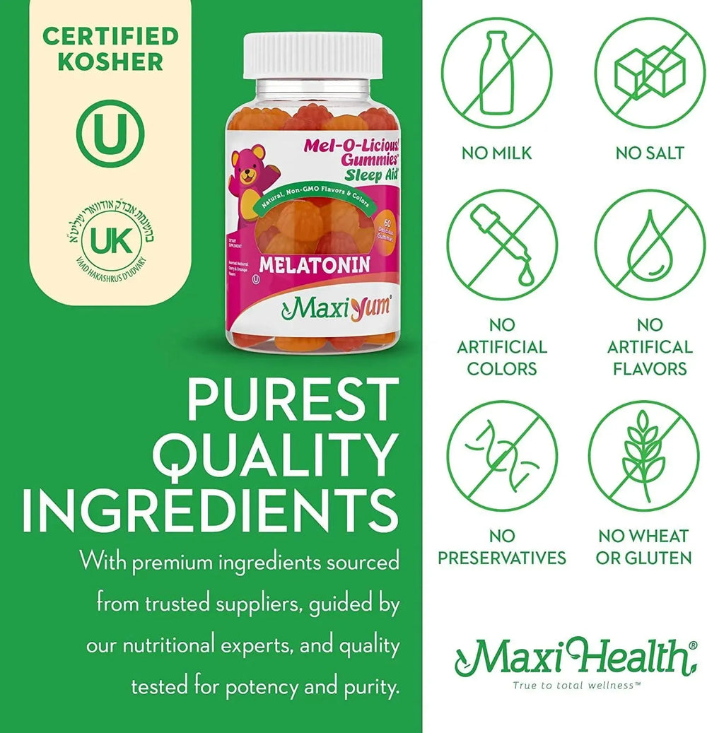 • SUPLEMENTO SEGURO: las gomitas de melatonina Mel-O-Licious para niños y adultos son un suplemento natural seguro para niños y adultos. Recomendado por pediatras por sus atributos positivos hacia el ritmo circadiano y el ciclo de sueño/vigilia en niños pequeños y adolescentes.