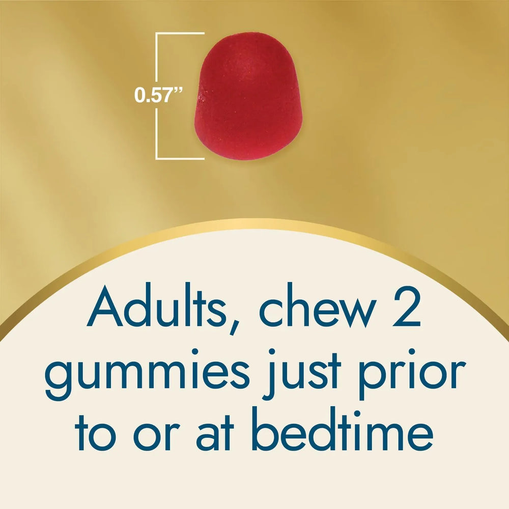 Adultos, mastique 2 gomitas justo antes o antes de acostarse.