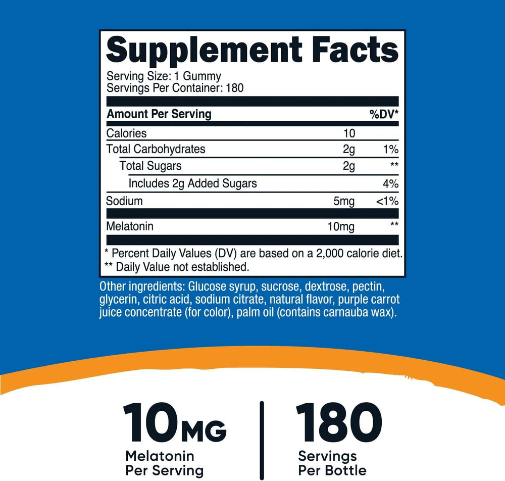 • 10 mg de melatonina por porción, 5 mg de melatonina por gomita