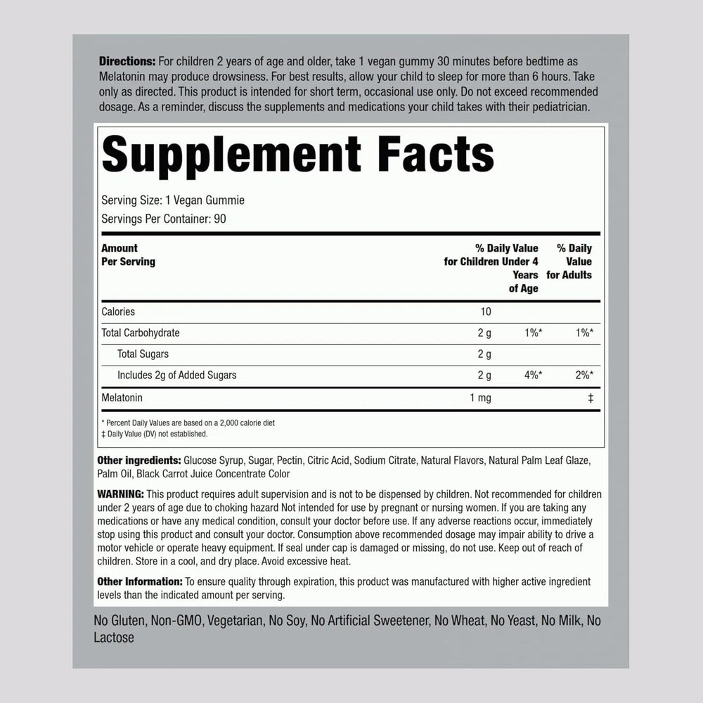 Piping Rock Kids Melatonin Gummies 1Mg. 90 Gomitas
