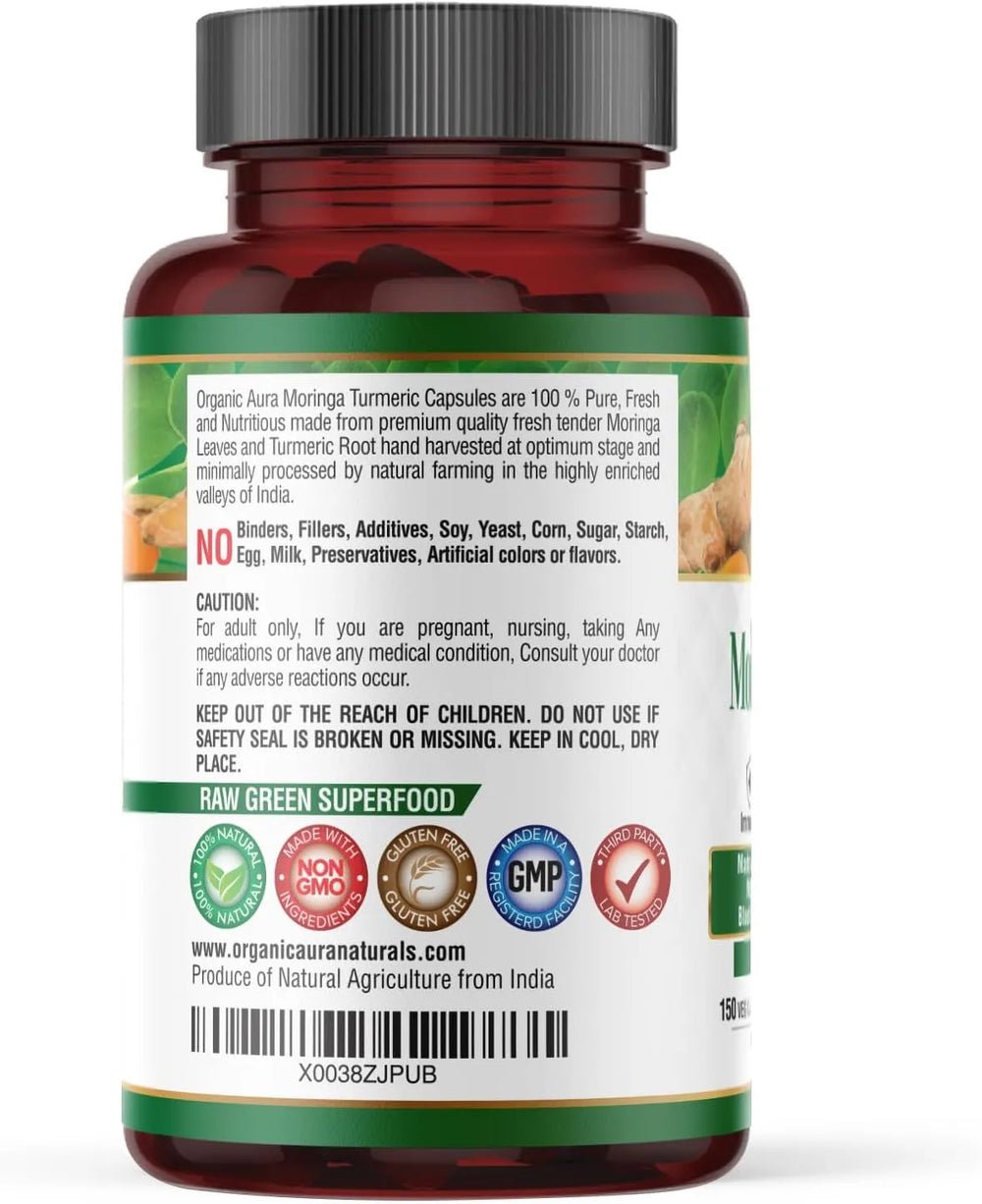 Organic Aura Moringa Turmeric Curcumin 150 Capsulas