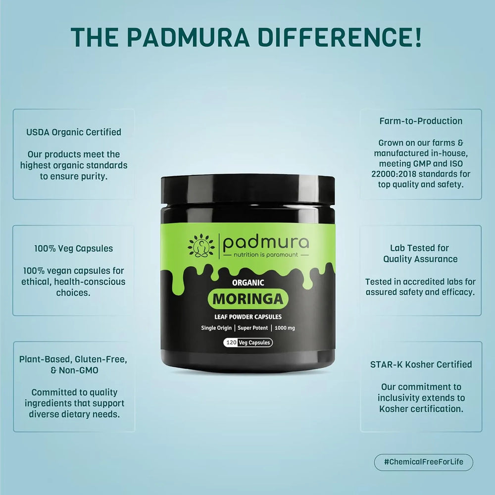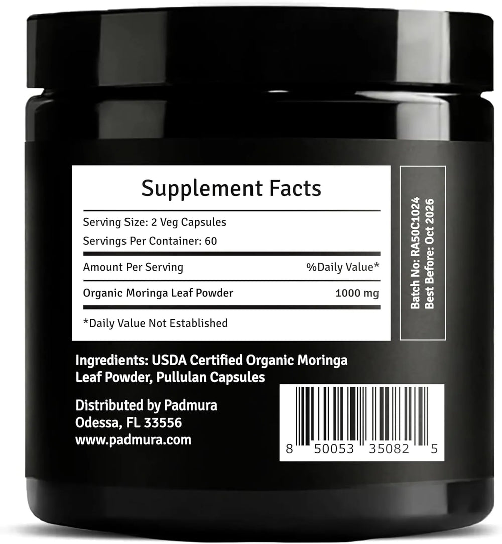 PADMURA Organic Moringa Oleifera Leaf Powder 120 Capsulas