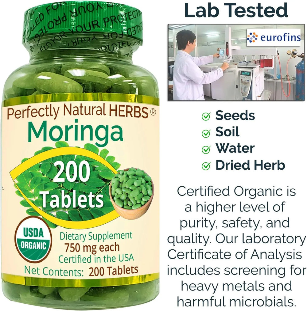 Perfectly Natural Herbs Organic Moringa 200 Tabletas