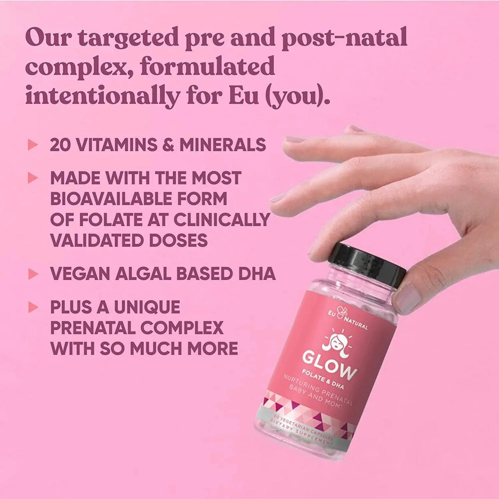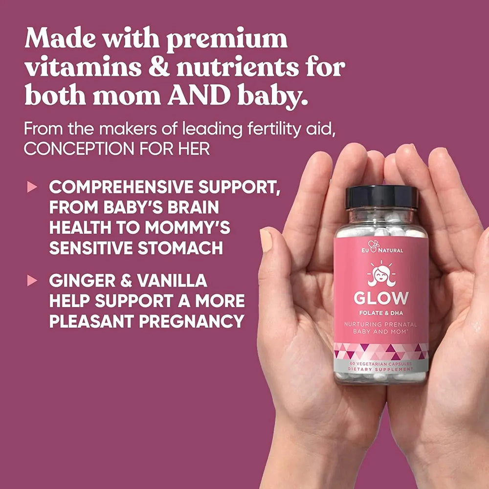EU Natural Glow Prenatal Vitamins + Folate & DHA 60 Capsulas