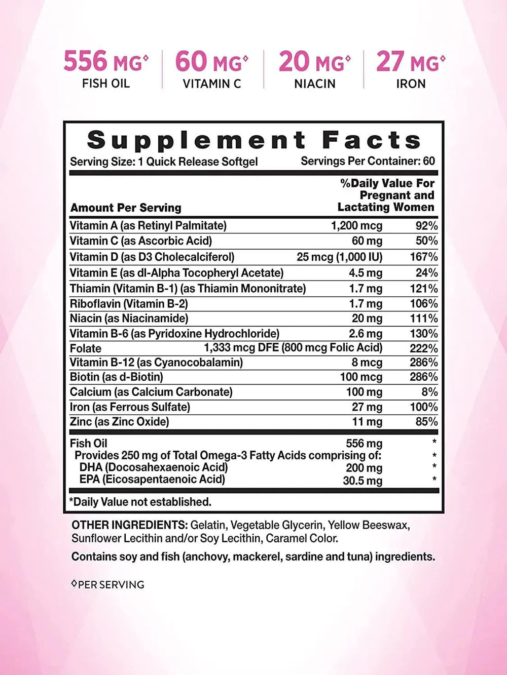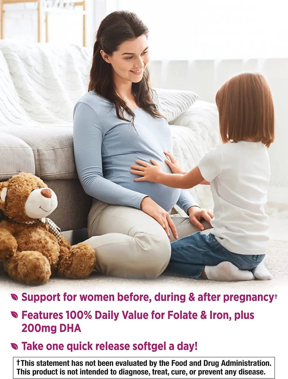 • SÚPER CONVENIENTE: una sola cápsula blanda diaria de liberación rápida brinda una fórmula prenatal integral