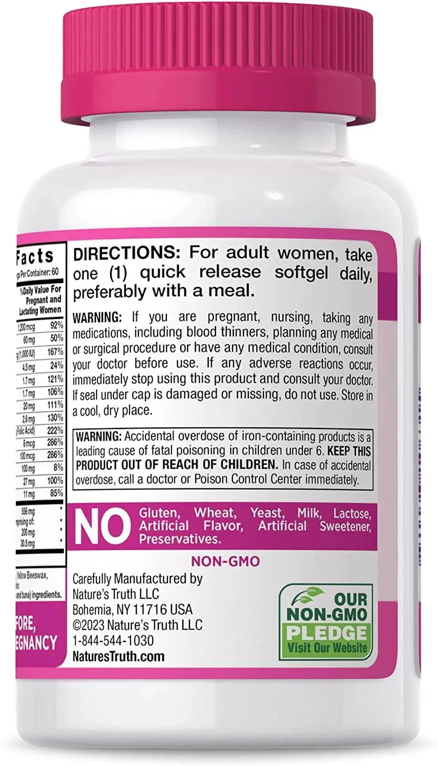 Nature's Truth Prenatal Vitamins with DHA and Folic Acid 60 Capsulas Blandas